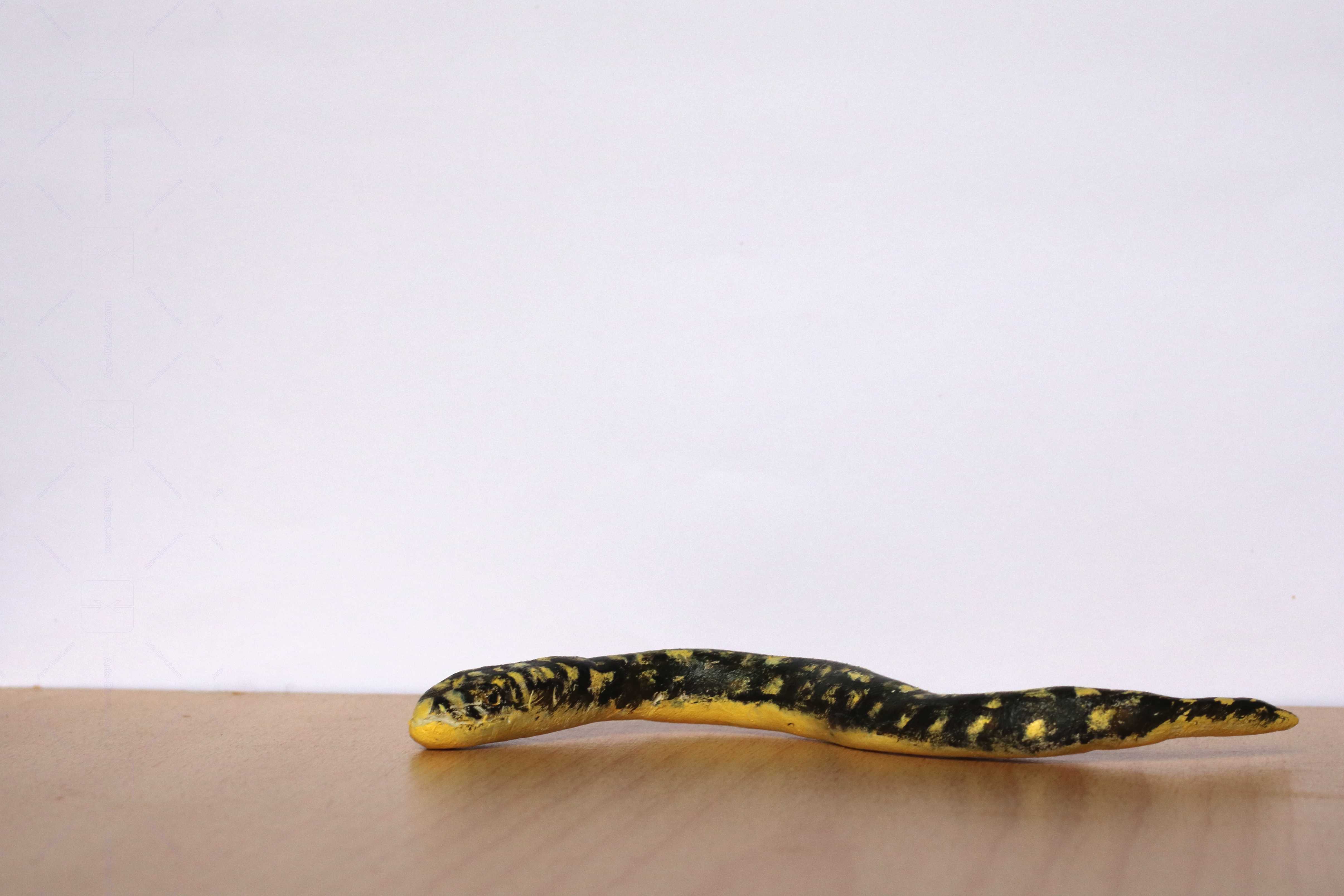 Sculpture animalière de petite taille en couleurs, modelée, peinte et vernie à la main. Celle-ci peut être placée à plat, en intérieur.