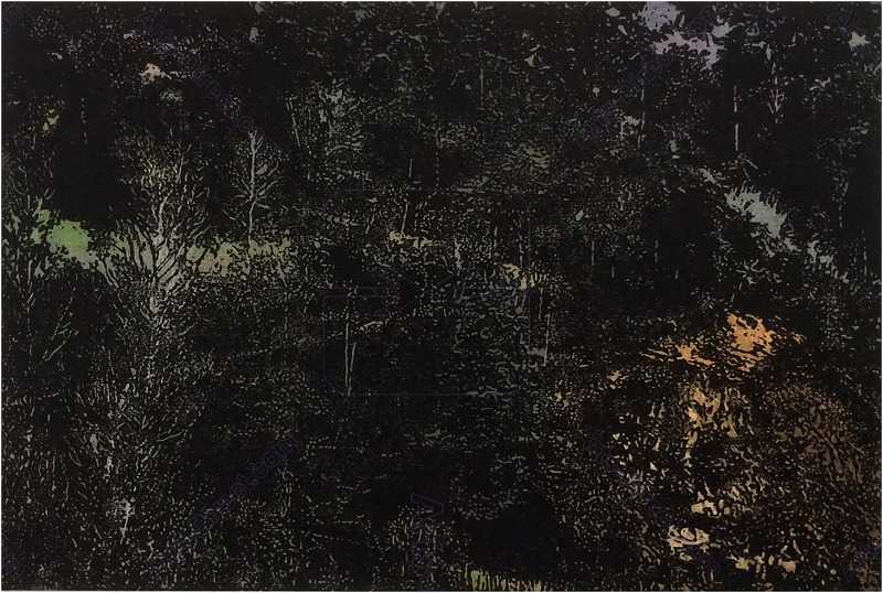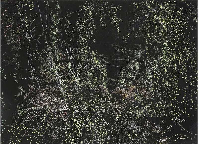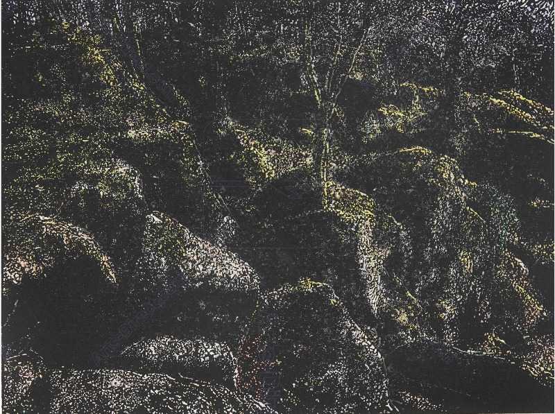 De près, la gravure offre une vision peut lisible, presque « abstraite ». De loin, le paysage se dessine en profondeur et en lumière.