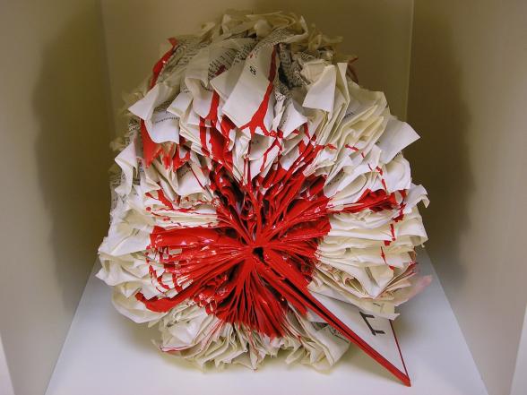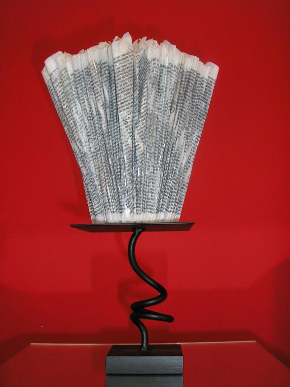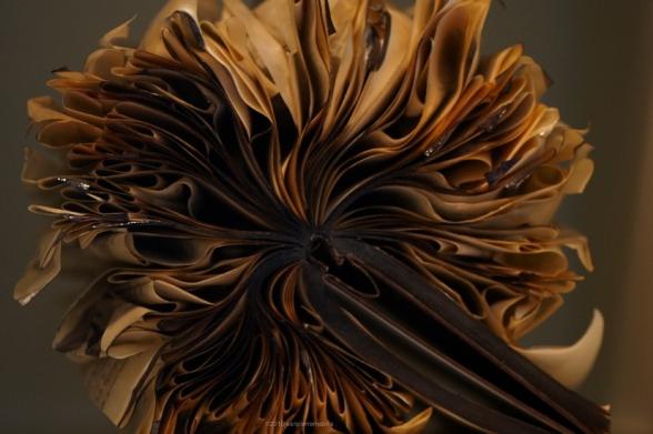 Tel un rituel, le livre doit avoir été lu et sa métamorphose s’opérera sans destruction. L’artiste travaille seule avec lui dans le silence pour laisser place au ressenti.