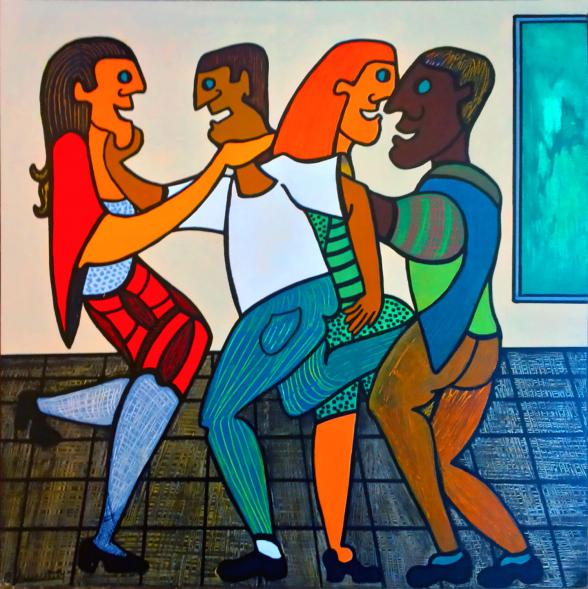 Au début du chemin, il y a un amalgame de formes, de lignes, et de couleurs essentiellement primaires, en quête d’elle-même et des autres au travers des formes et des couleurs un dépouillement total pour saisir une part infime de cette réalité humaine si profonde et si fuyante.
