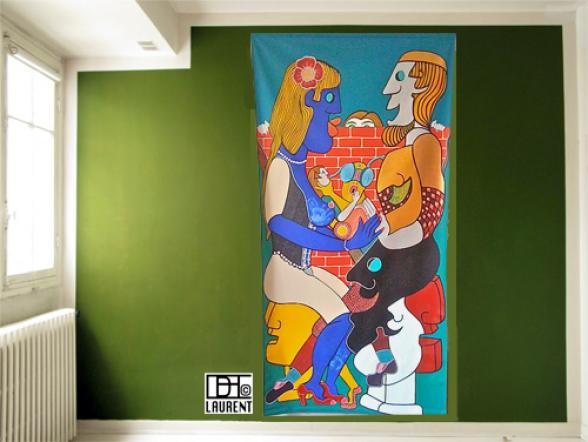 Les « couleurs de la vie » resteront pour Claude LAURENT l’effluence de son univers féerique. J’utilise dans tous mes travaux, les couleurs de bases des différentes races en symbole ! Noir, Rouge, Jaune et Blanc, puis la couleur du ciel et de la nature, que j’associe, le mélange des deux, donne un bleu vert, étonnant !