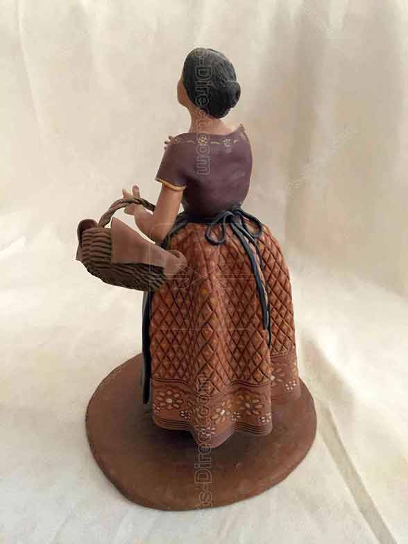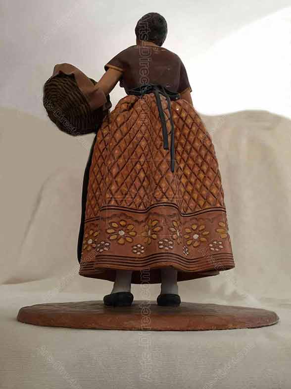 Statuette en terre cuite peinte à l'huile et vernie. Habillée à la feuille d'argile.