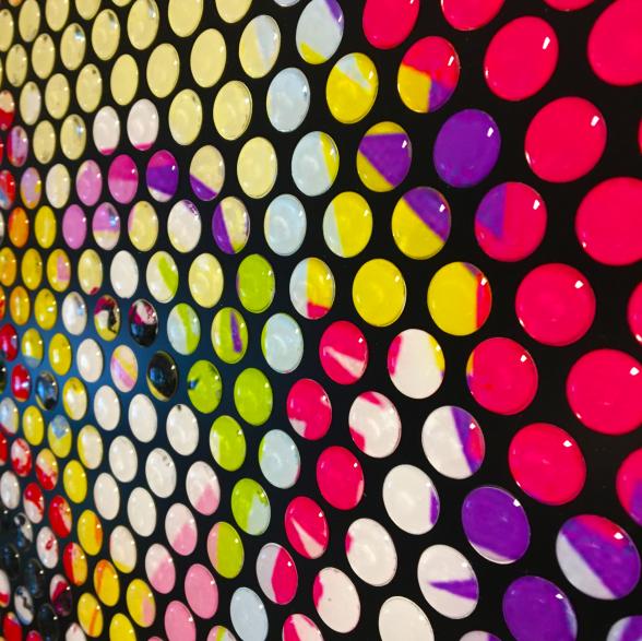 Montage pastilles en résine transparente sur aluminium 3 mm
