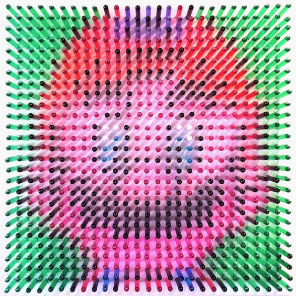 Technique : insertion de 729 tubes plastique transparent, diamètre 0.12 x hauteur 6 cm