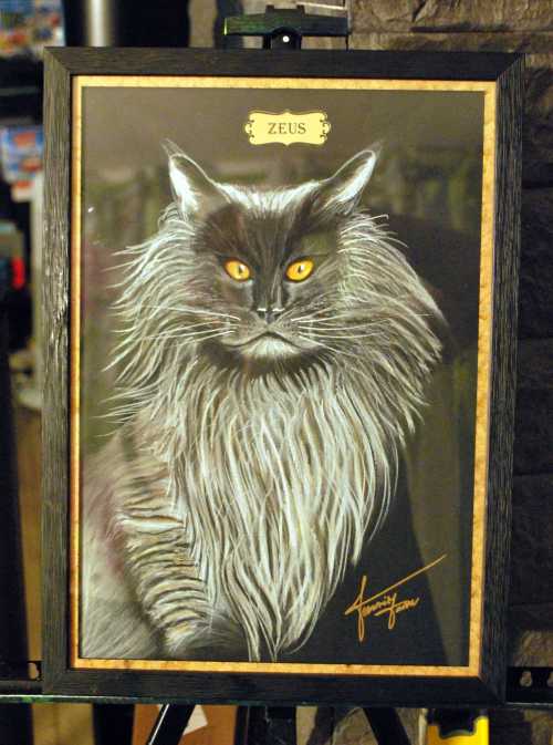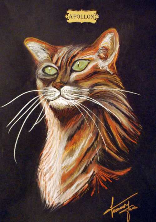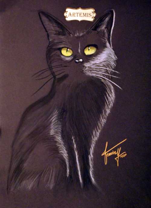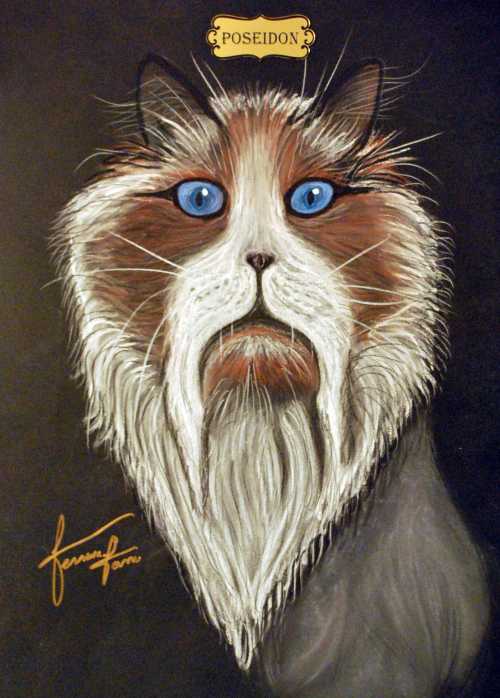 Voici ma collection de 12 chats qui représente les dieux principaux grecs. réalisé aux craies Pastel sec sur papier noir au format A3. Il y a aussi le nom de chaque dieux dans un encadré découpé au laser de couleur doré, Les tableaux sont préservés dans un cadre noir avec vitre en verre ainsi qu'un passe partout de couleur bois clair. Les œuvres sont signées recto ainsi qu'au verso en plus le nom de chaque chat que j'ai utilisé et la date de réalisation. prix sur demande.