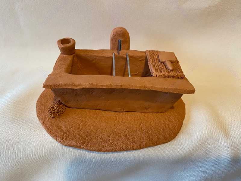 Lavoir de Marie Rose avec battoir, sceau et fleur brut en terre cuite