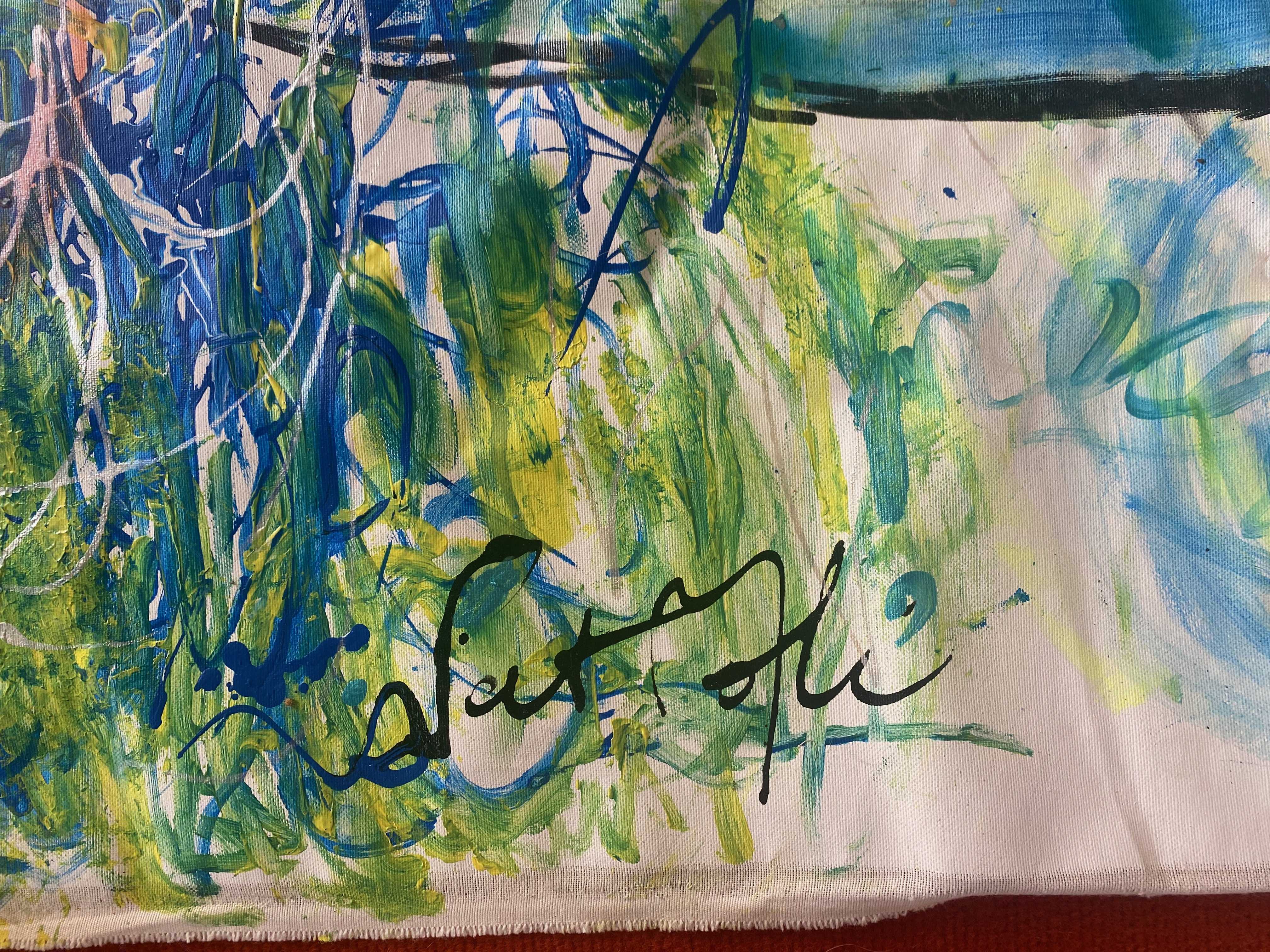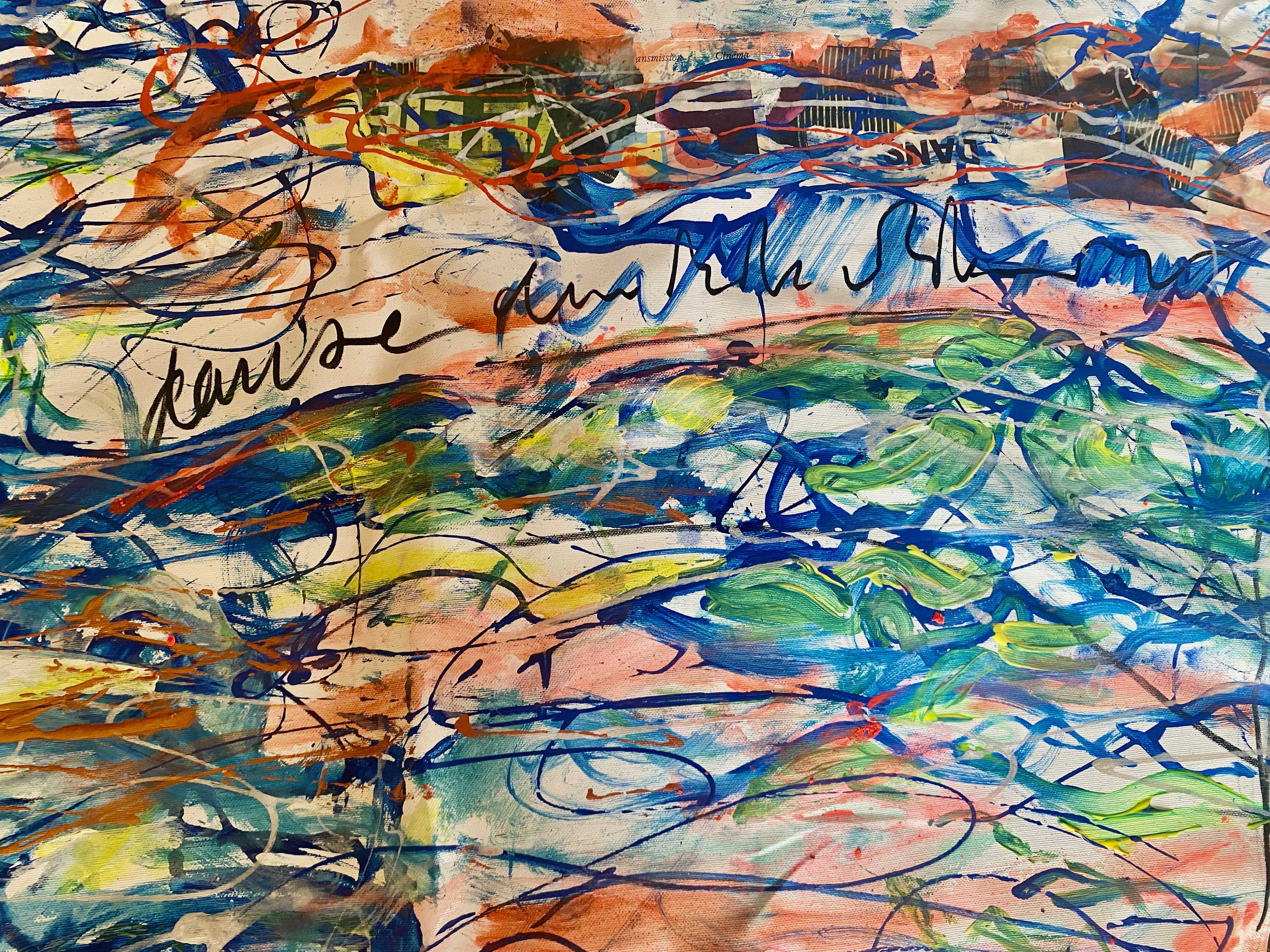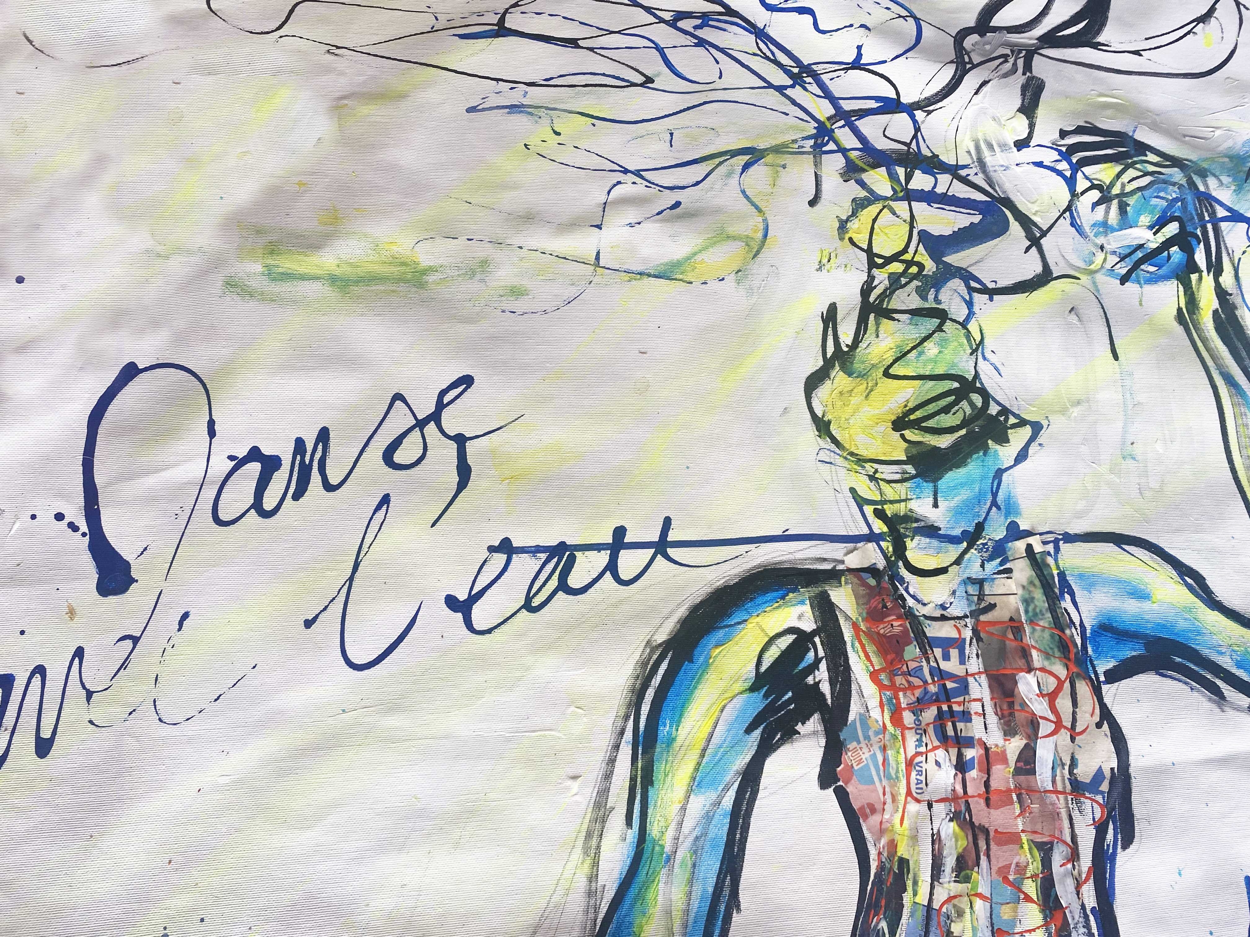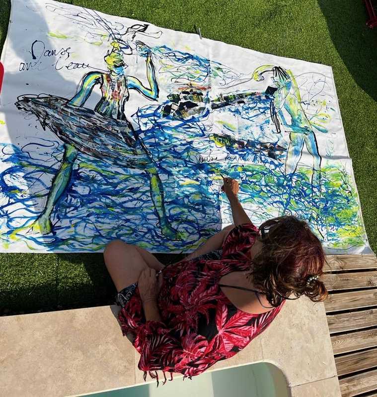 La série de PatMoli en hommage à L’eau comme lien inaliénable avec l’être humain se poursuit avec cette grande toile mettant en scène deux personnages dansant en totale symbiose avec le liquide vital. Les ondulations du mouvement trouvent leur origine et leur finalité dans la liberté portée par l’élément liquide qui les enveloppe et vient les nourrir de douceur et de lumière. La liaison profonde entre les deux personnages se structure grâce et à cause de l’eau. Inspirée par le film de Cédric Klapisch " En Corps"et le chorégraphe Hofesh Shechter.