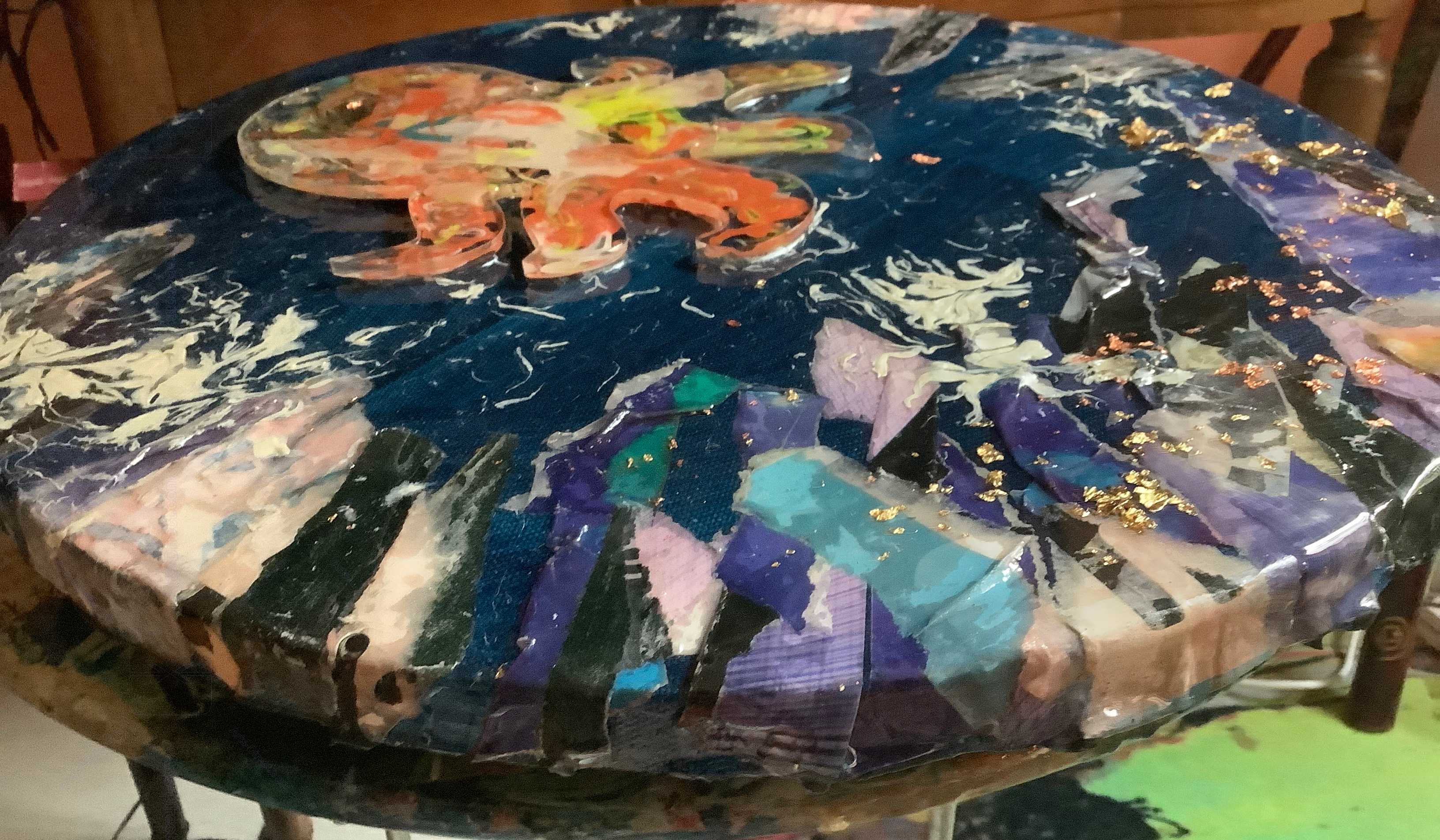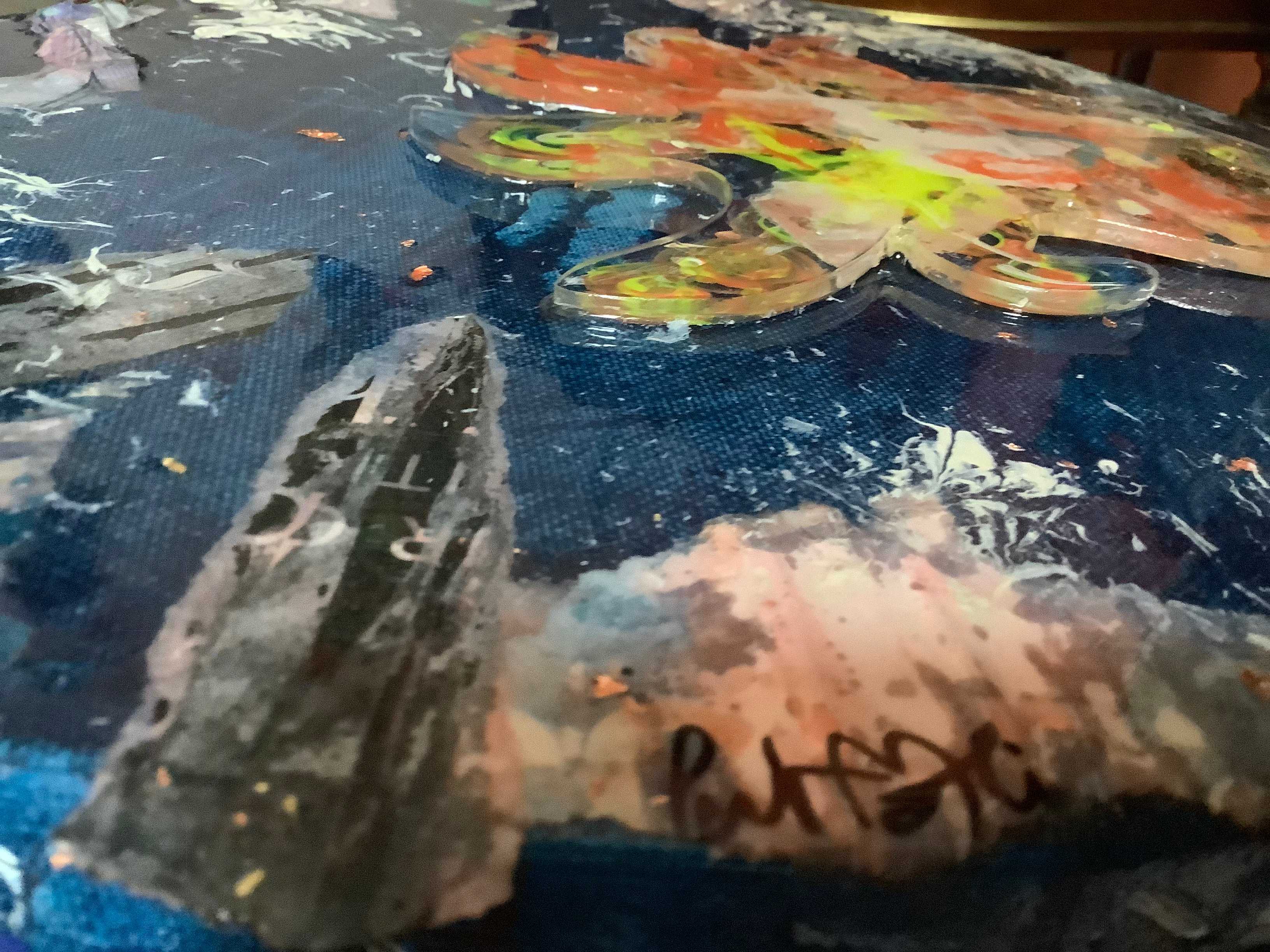Le poulpe symbolise la flexibilité, la créativité, l'intelligence, l'expansion et l'imprévisibilité. PatMoli a entrepris de réaliser une série d’œuvres mettant en lumière la pollution marine en Méditerranée. Elle fixe le tout, algues et poulpe en plexiglas, comme à son habitude en le résinant, comme si l’image était à jamais figée dans la glace, pour mieux représenter l’urgence qu’il y a à arrêter cette course folle vers le réchauffement du climat.