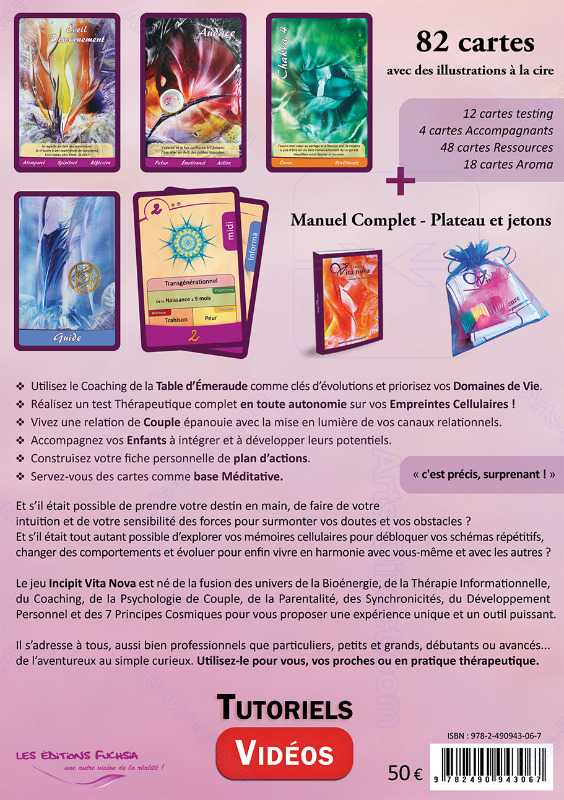 Le jeu Incipit Vita Nova est né de la fusion des univers de la Bioénergie, de la Thérapie Informationnelle, du Coaching, de la Psychologie de Couple, de la Parentalité, des Synchronicités, du Développement Personnel et des 7 Principes Cosmiques pour vous proposer une expérience unique et un outil puissant.