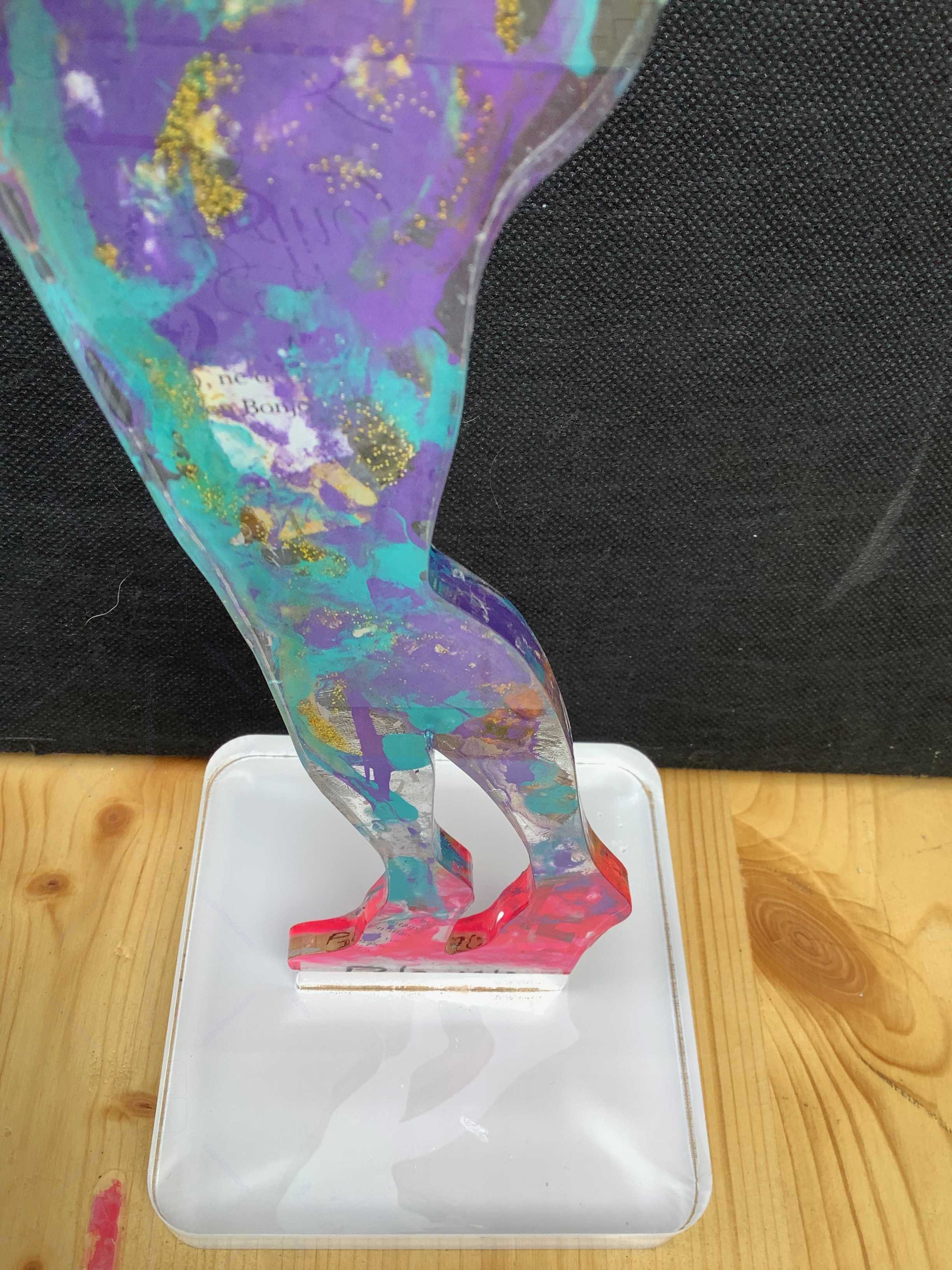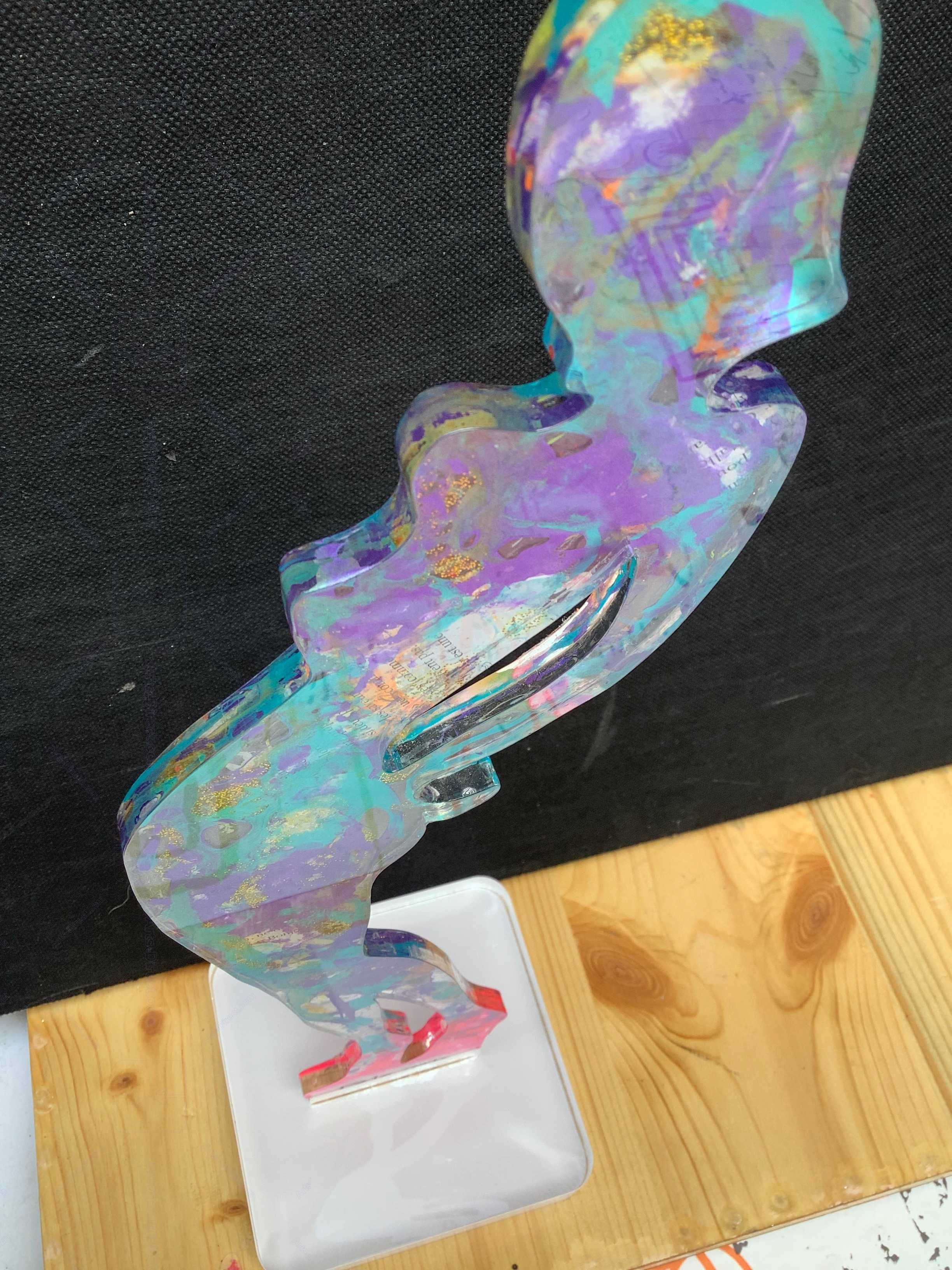 Son socle est transparent, amovible et de 2 cm d'épaisseur. C'est une pièce unique différente en recto-verso. 42 x 12 x12 cm