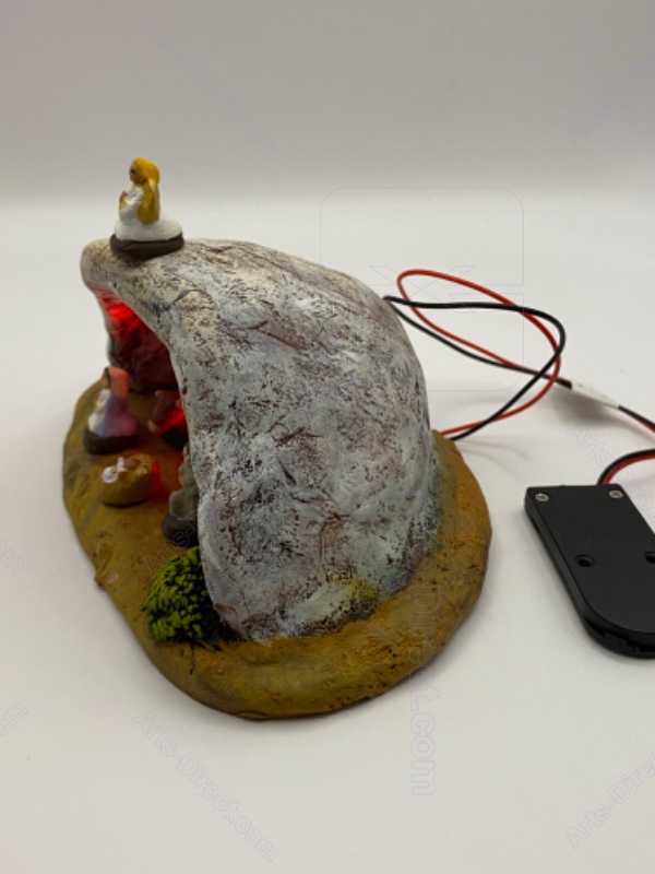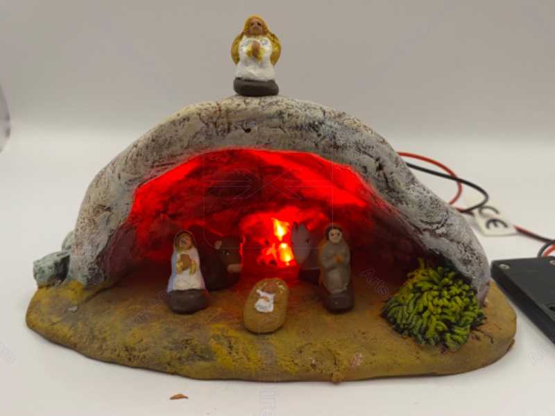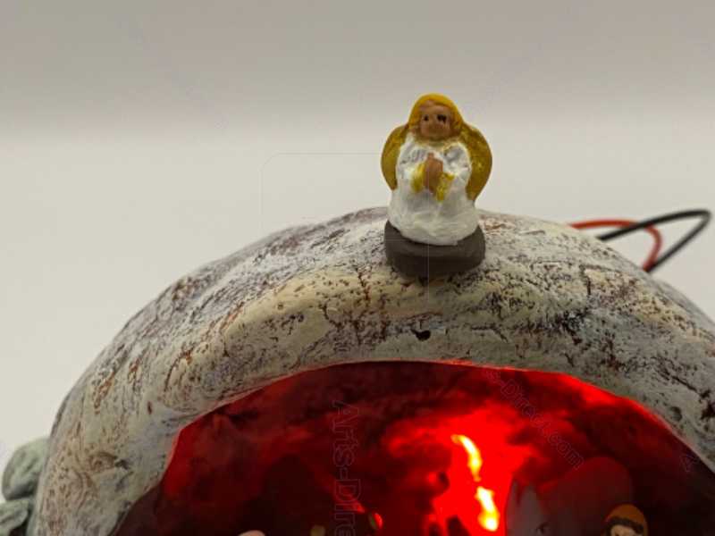 Inclus : santons puces de 2cm environ (Marie, Joseph, Jésus, Âne, Bœuf, Ange) et la lumière effet feu