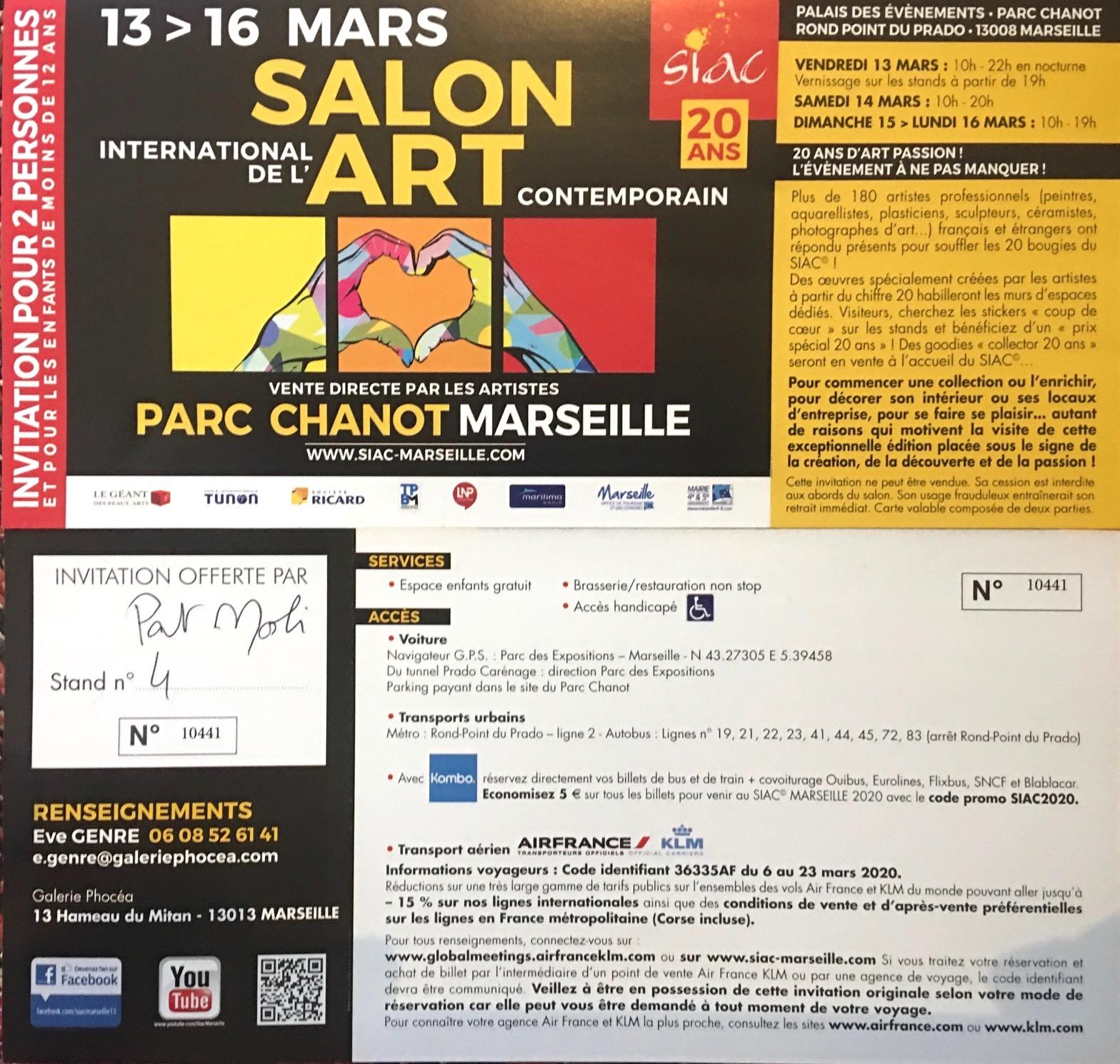 LE SALON INTERNATIONAL D'ART CONTEMPORAIN A MARSEILLE AU PARC CHANOT (AVEC PAT MOLI STAND 4) FETE SES 20 ANS