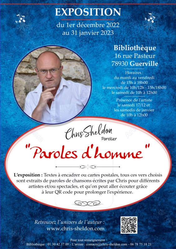 Composée de textes ou extraits de textes présentés encadrés et sous d’autres formes, tous les vers choisis et mis en formes sont extraits de paroles de chansons écrites par le parolier Chris Sheldon pour différents artistes francophones et/ou spectacles musicaux.