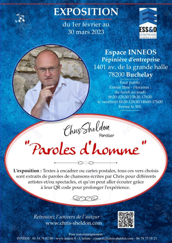 Composée de textes ou extraits de textes présentés encadrés et sous d’autres formes, tous les vers choisis et mis en formes sont extraits de paroles de chansons écrites par le parolier Chris Sheldon pour différents artistes francophones et/ou spectacles musicaux.