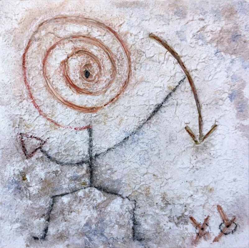 Le opere di Andrea Benetti, realizzate con pigmenti di 40mila anni fa, rinvenuti nella grotta di Fumane (VR) insieme a cinque pitture rupestri su pietra, instaurano un dialogo, che evidenzia le similitudini tra la comunicazione visuale della Preistoria e l'odierno linguaggio digitale, creando un ponte ideale tra l’artista del Terzo Millennio e il suo “collega” del Paleolitico.